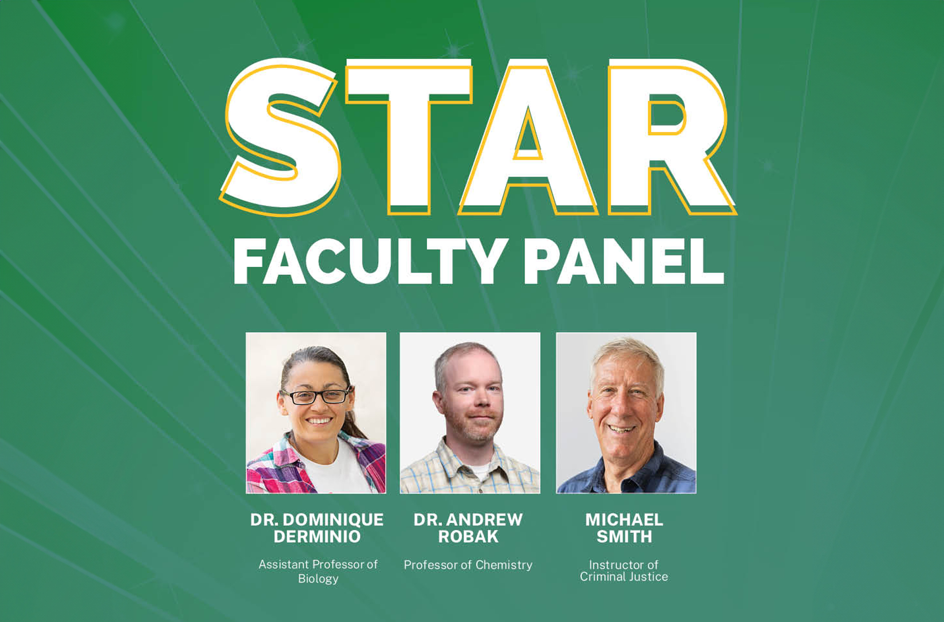 The STAR Faculty Panel was launched during the Fall 2021 semester to spotlight the College’s high-achieving instructors. Each semester, three to five faculty members are honored with inclusion to the panel.