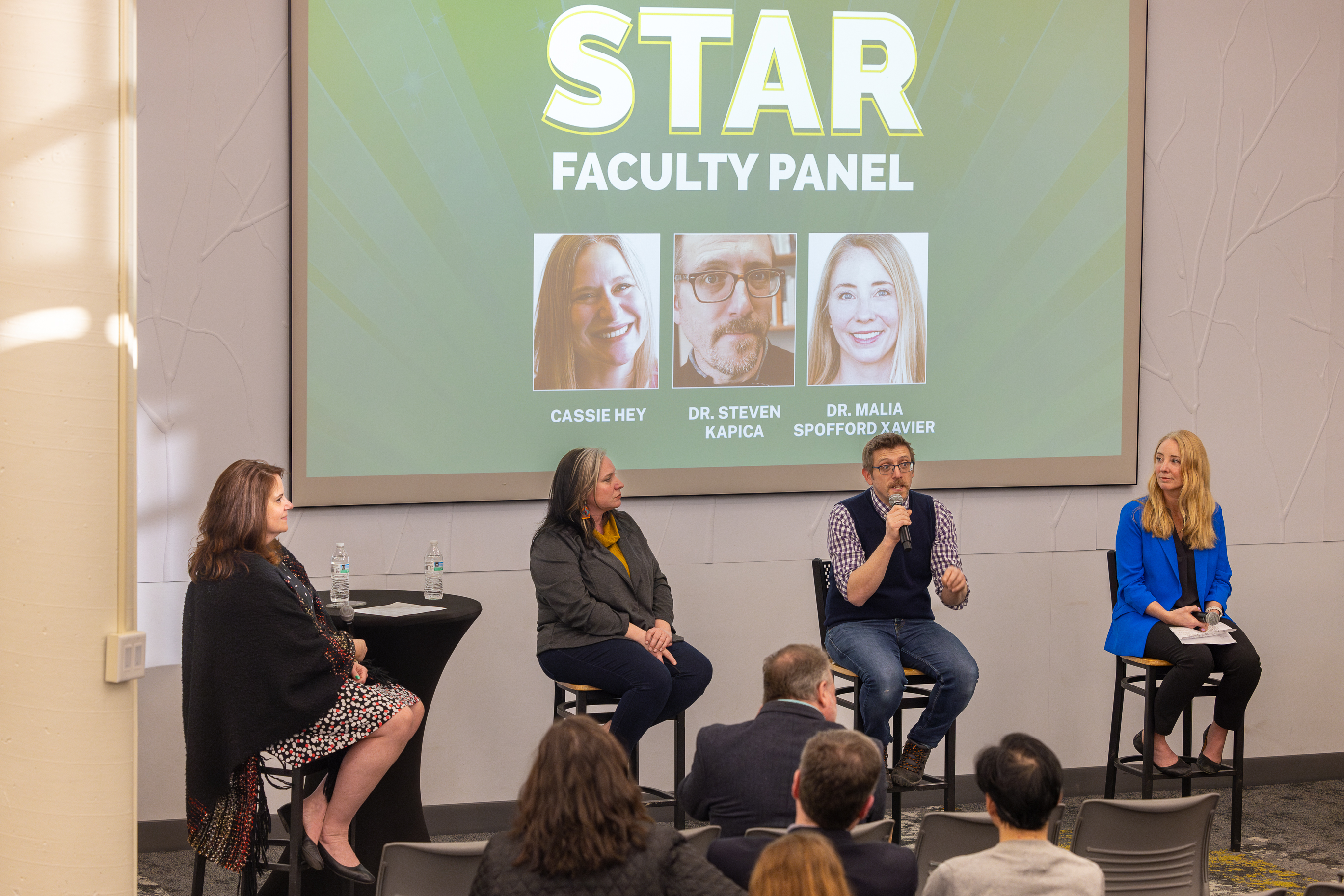 Moderated by Provost and Vice President for Academic Affairs Dr. Heather Maldonado, the panel featured insights from Clinical Assistant Professor of Occupational Therapy Dr. Cassie Hey ’04 M’07, Associate Professor of English Dr. Steven Kapica, and Associate Provost and Associate Professor of Spanish Dr. Malia Spofford-Xavier. Together, they explored AI’s growing role in education, acknowledging both its potential and its challenges.