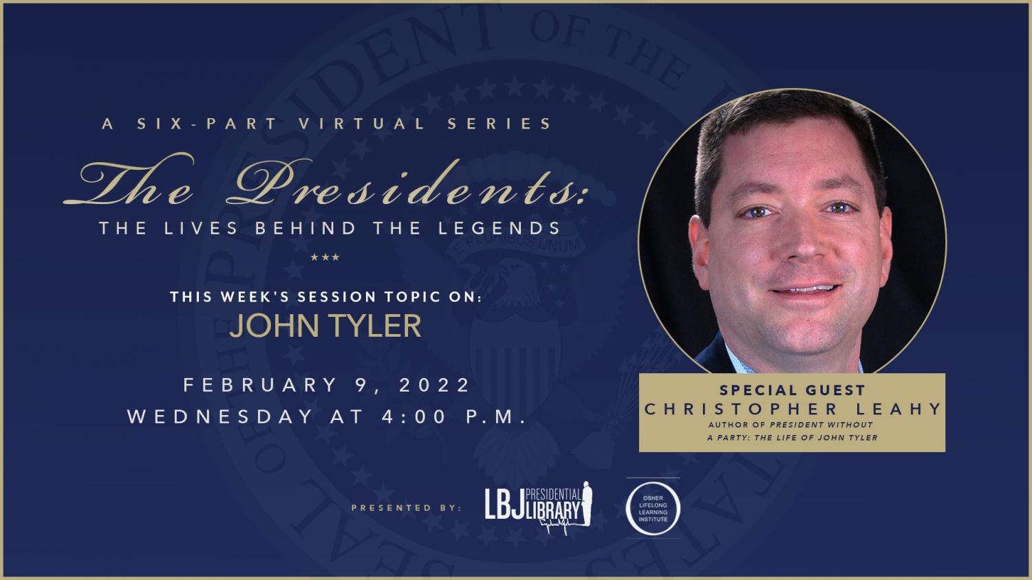 Just months after a presentation by Dr. Leahy was broadcast on C-SPAN, he’ll take part in an online discussion hosted by the Lyndon B. Johnson Presidential Library on Wednesday, Feb. 9, at 5 p.m. (EST). The topic of both forums: President John Tyler, whose life and career Dr. Leahy documented in his recent biography, “President without a Party: The Life of John Tyler.”