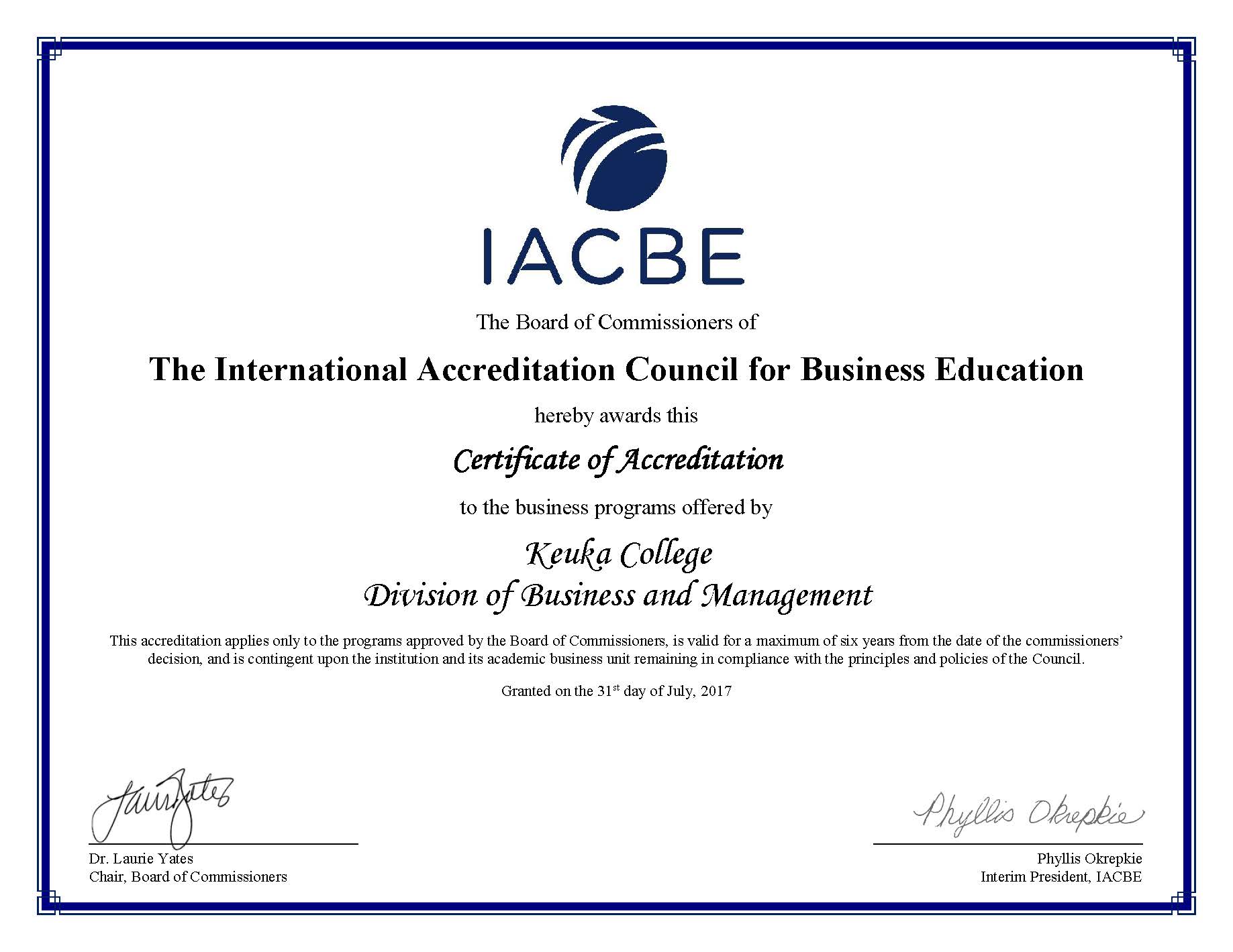 The Board of Commissioners of the International Accreditation Council for Business Education has renewed its accreditation of Keuka College’s Division of Business and Management programs.