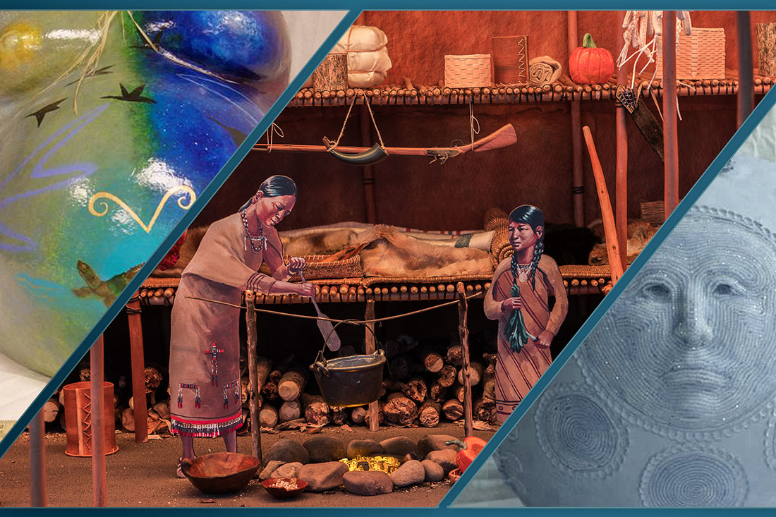 Hodinöhsö:ni’ Women: From the Time of Creation examines myriad ways in which the Hodinöhsö:ni’ women have acted as positive forces in our world, and provides a glimpse into their complex and sophisticated way of life. As the exhibit unfolds, it demonstrates that from the time of creation to the present, Hodinöhsö:ni’ women continue to provide guidance, wisdom, healing, joy, sustenance, hope, peace, and love to the world.