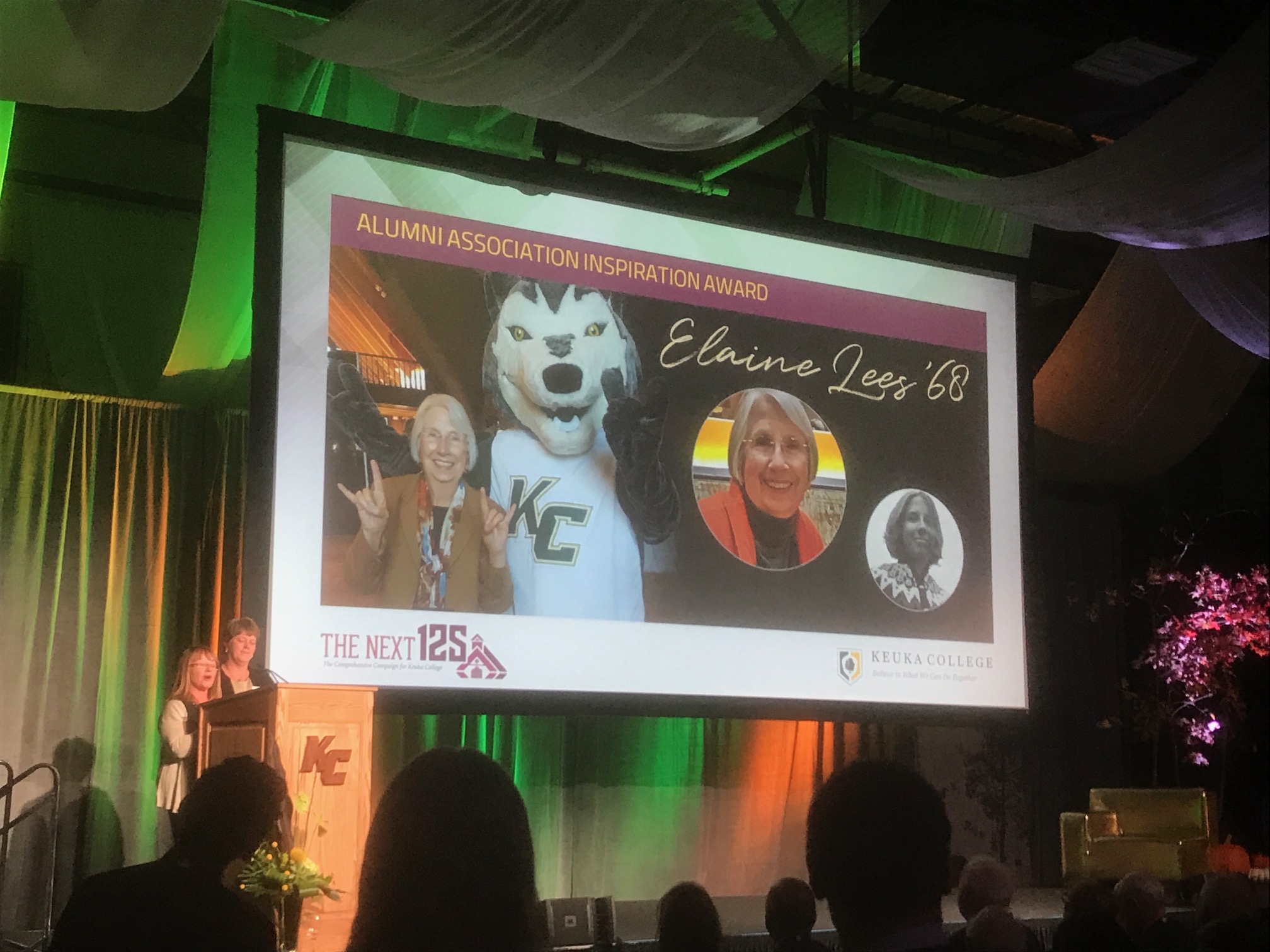 The late Dr. Elaine O. Lees ’68 is honored with the Keuka College Alumni Association Inspiration Award.